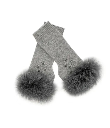 Elevate your winter look with our 100% Wool Knit Fingerless Gloves, featuring a luxurious diamond weave design adorned with crystals. Finished with a soft fox fur trim, these gloves offer both warmth and elegance, making them a stylish choice for chilly days.