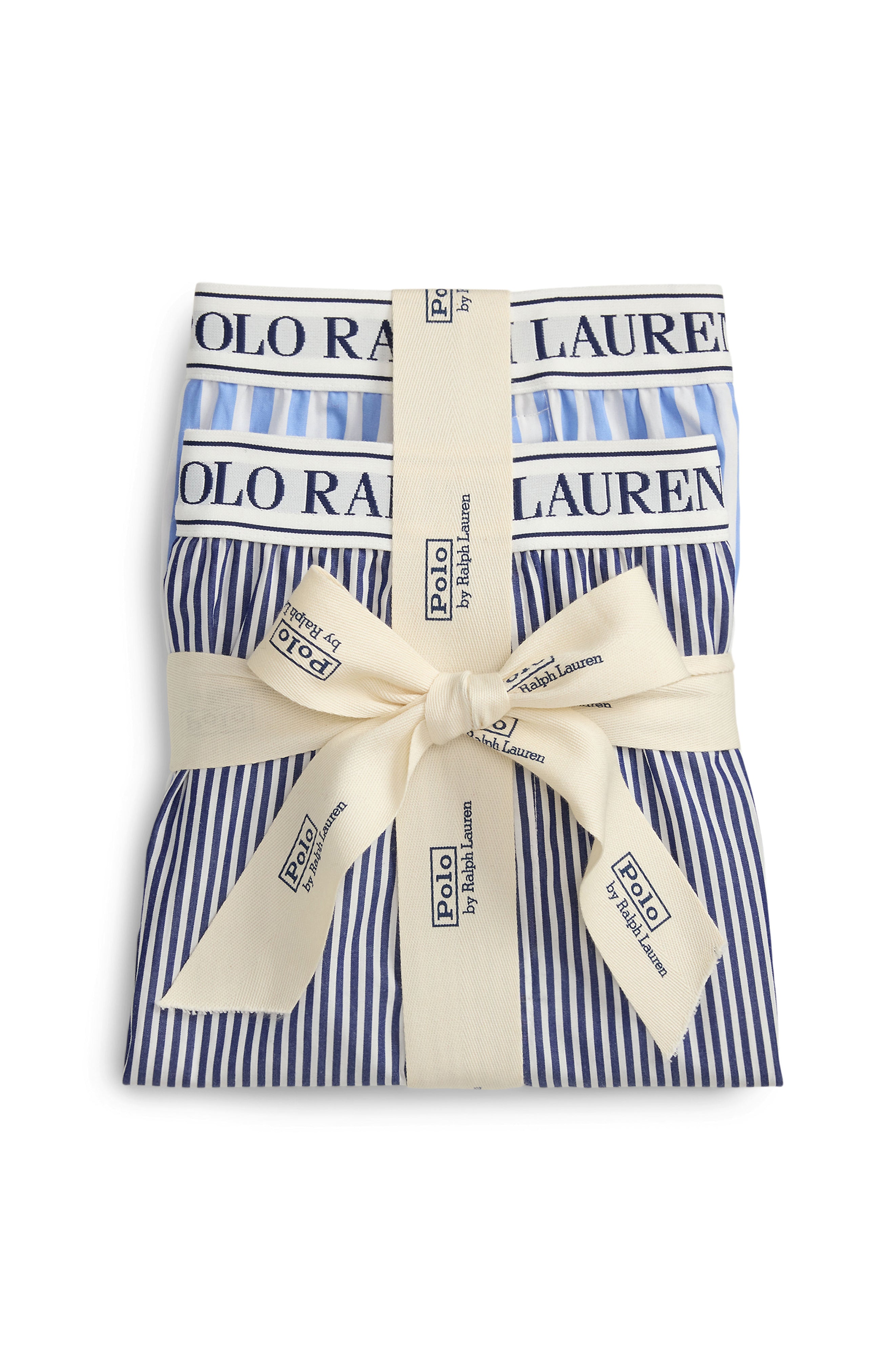 Elevate your loungewear game with this Stripe Cotton 2-Pack Boxer Set. Perfectly paired for mix-and-match style, each lightweight cotton pair features classic vertical stripes and a sporty elasticized logo waistband for effortless comfort. Ideal for lounging, sleeping, or gifting, this set brings both style and practicality in one ribbon-wrapped package.