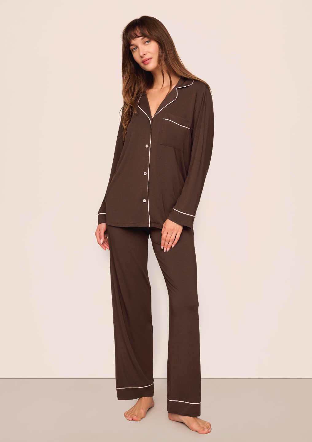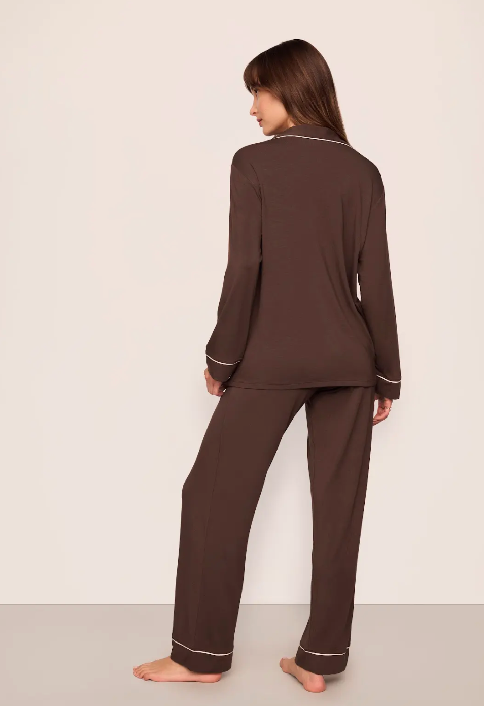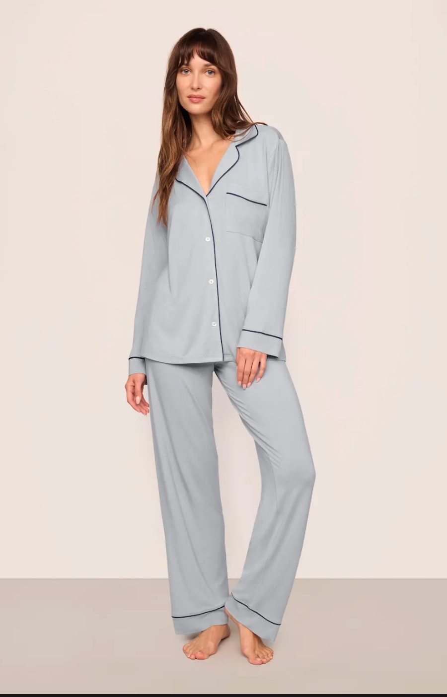 The PJ that started it all—now in a dreamy Cornflower Blue/White colorway. Crafted from buttery soft TENCEL™ Modal with a touch of stretch, this relaxed long sleeve set is OEKO-TEX® Standard 100 certified, meaning it’s made with non-toxic dyes for safe, sustainable comfort. The button-front top features a notch collar and functional chest pocket, while the straight-leg pant offers a low-rise fit with a thin elastic waistband. Finished with contrast piping for a timeless touch, it’s the perfect pairing for cozy nights and laid-back mornings.