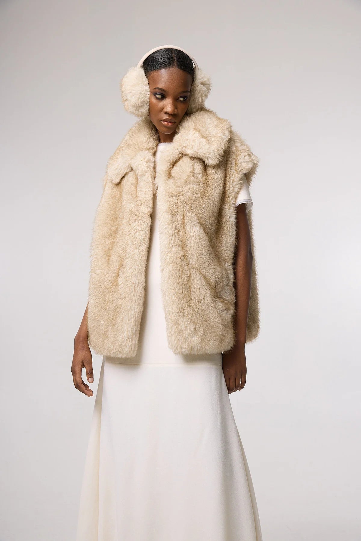 Effortlessly chic and consciously crafted, the Mia Vest elevates winter layering with plush, cruelty-free faux fur. Thoughtful details like the overlap collar, dropped shoulders, and front slit pockets blend modern style with everyday ease. A polished finish inside and out makes it a timeless cold-weather staple.