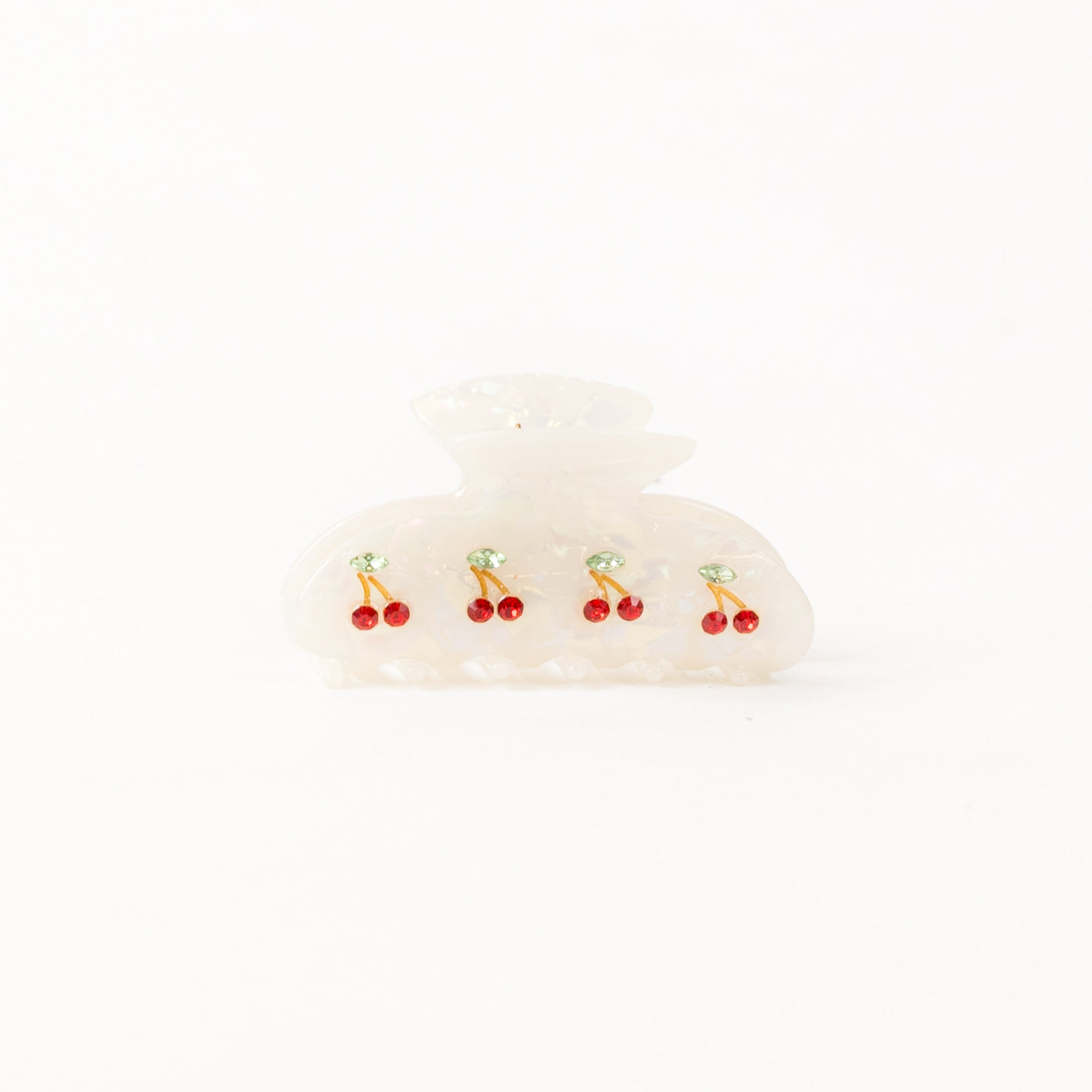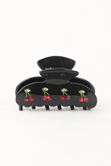 Add a sweet touch to your hairstyle with this playful Cherry Hair Clip. Featuring a charming cherry design with red and green crystals, this clip is both cute and functional. Perfect for securing your hair in place while adding a pop of color to your look, whether you’re styling it for a casual day out or a special occasion. Available in two colors: Black and White.