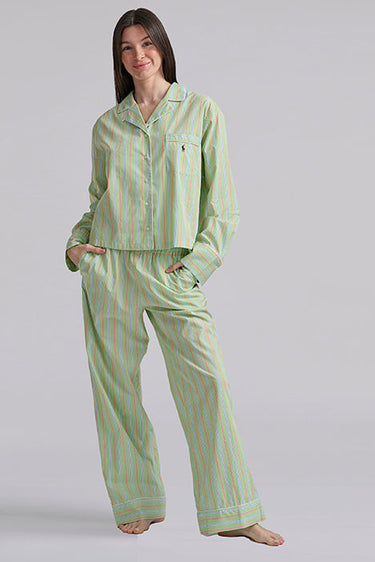 Relax in timeless comfort with the Sunday Stripe PJ Set, crafted from 100% breathable cotton. Designed with classic vertical striping, this set features a long-sleeve button-front top with a notch collar and chest patch pocket, finished with a signature embroidered Pony.