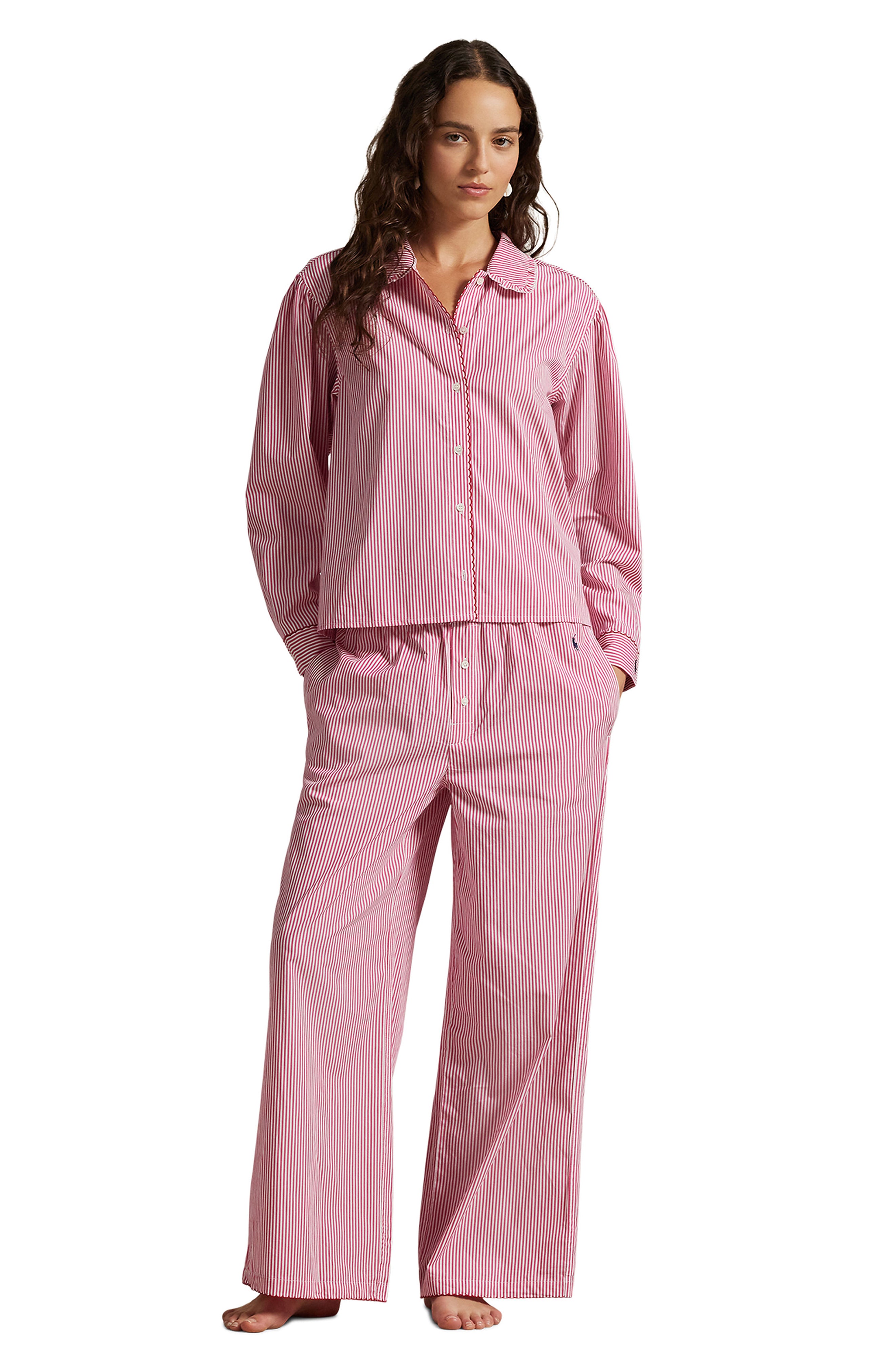 In College Pink Stripe, this two-piece pajama set features classic shirting lines and Ralph Lauren’s signature embroidered Pony. Crafted from breathable cotton poplin, it offers long-lasting comfort that softens beautifully with time.