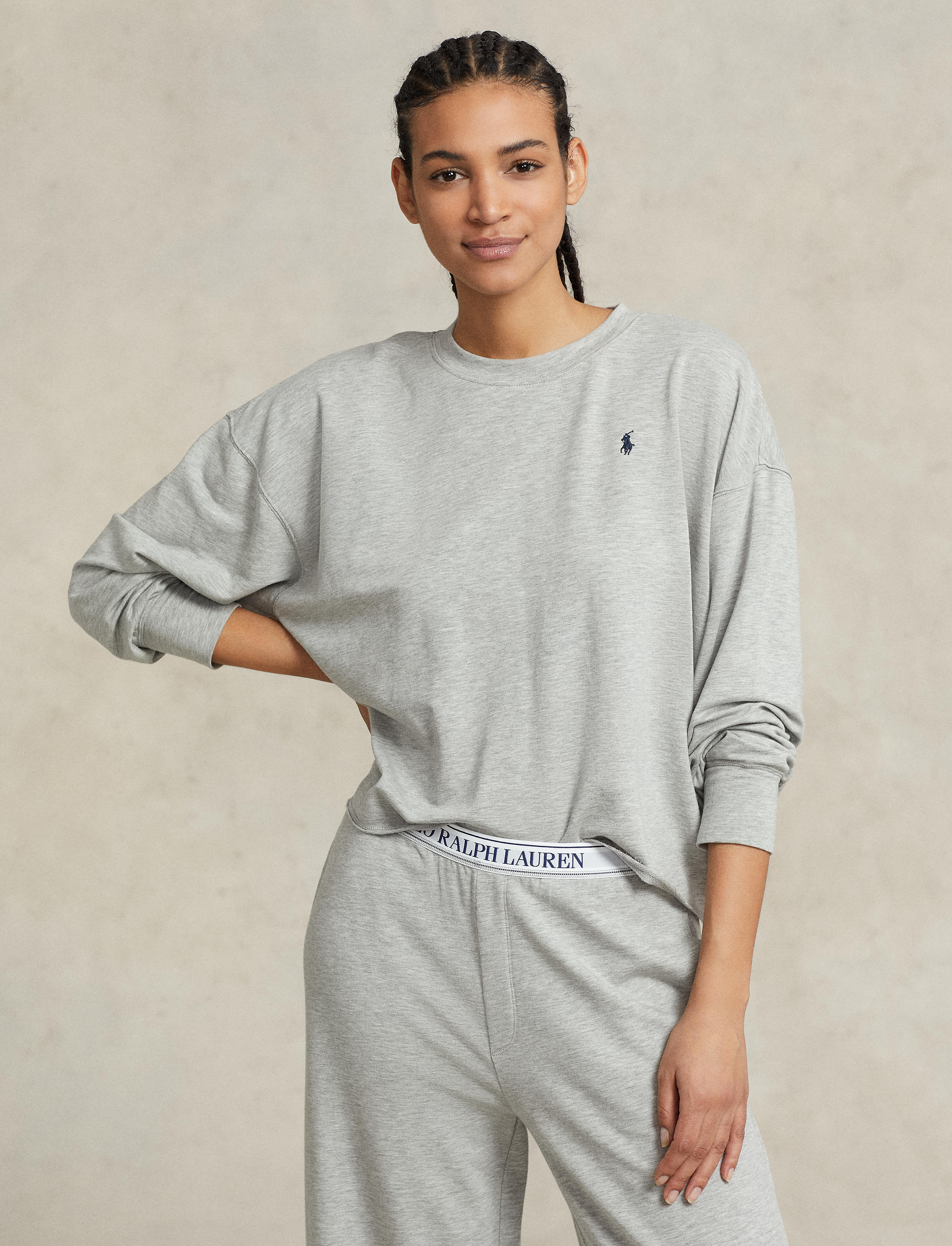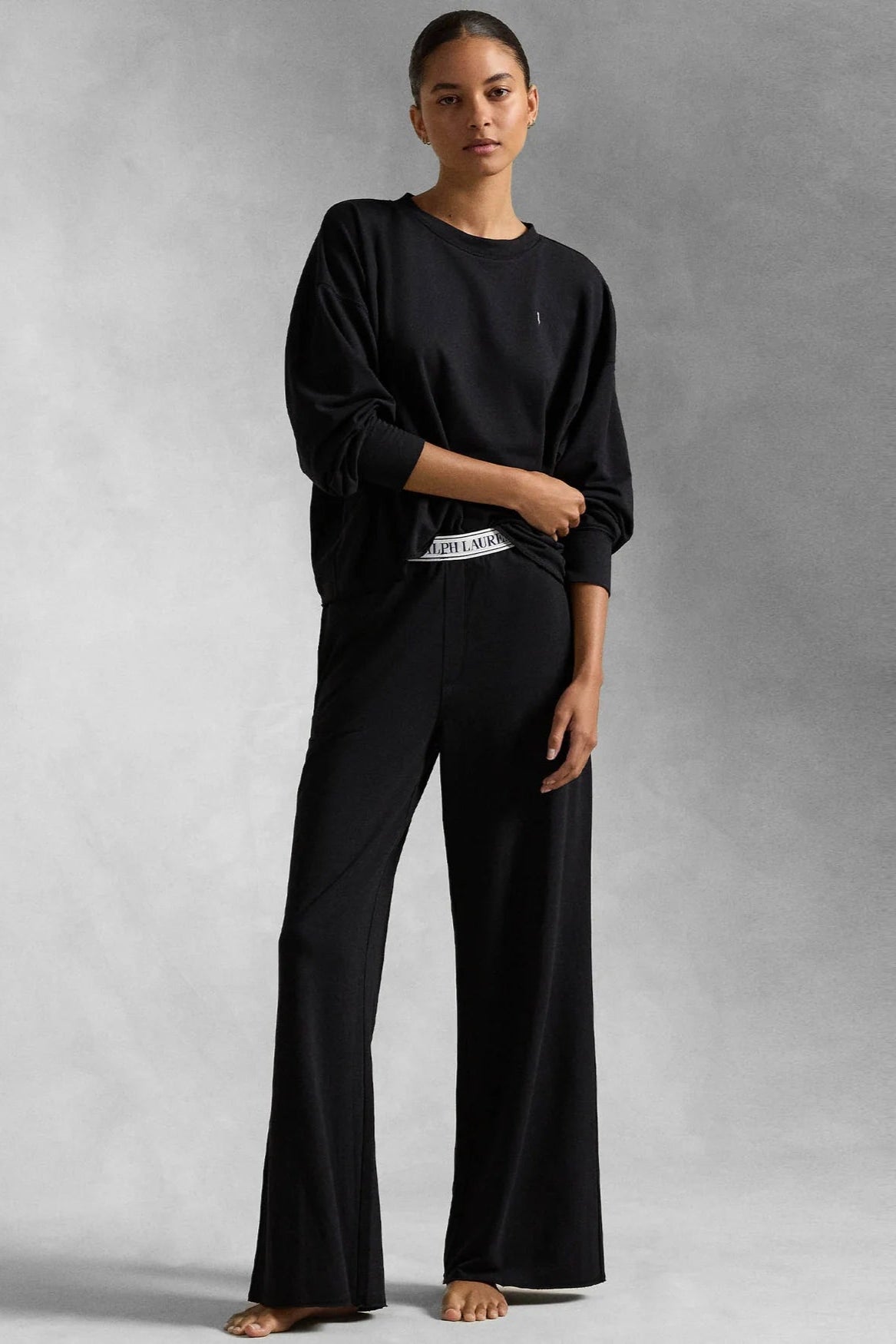 Luxuriate in comfort whether you’re sleeping or lounging with this relaxed pyjama set, crafted from a soft, breathable cotton-rich blend with added stretch. Designed with dropped shoulders and wide-leg bottoms, the set is finished with a Polo Ralph Lauren logo elastic waistband and signature embroidered Pony at the chest.