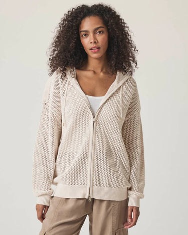 Feel the breeze in the Nala Zip Up Sweater Hoodie. It's breathable mesh stitch design helps keeps you cool while providing coverage. Featuring a 2-way zipper closure, knit drawcords at the hood and an oversized body, this style is perfect for layering over all your tees or tanks.