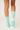 Teal fuzzy socks with candy cane embroidery