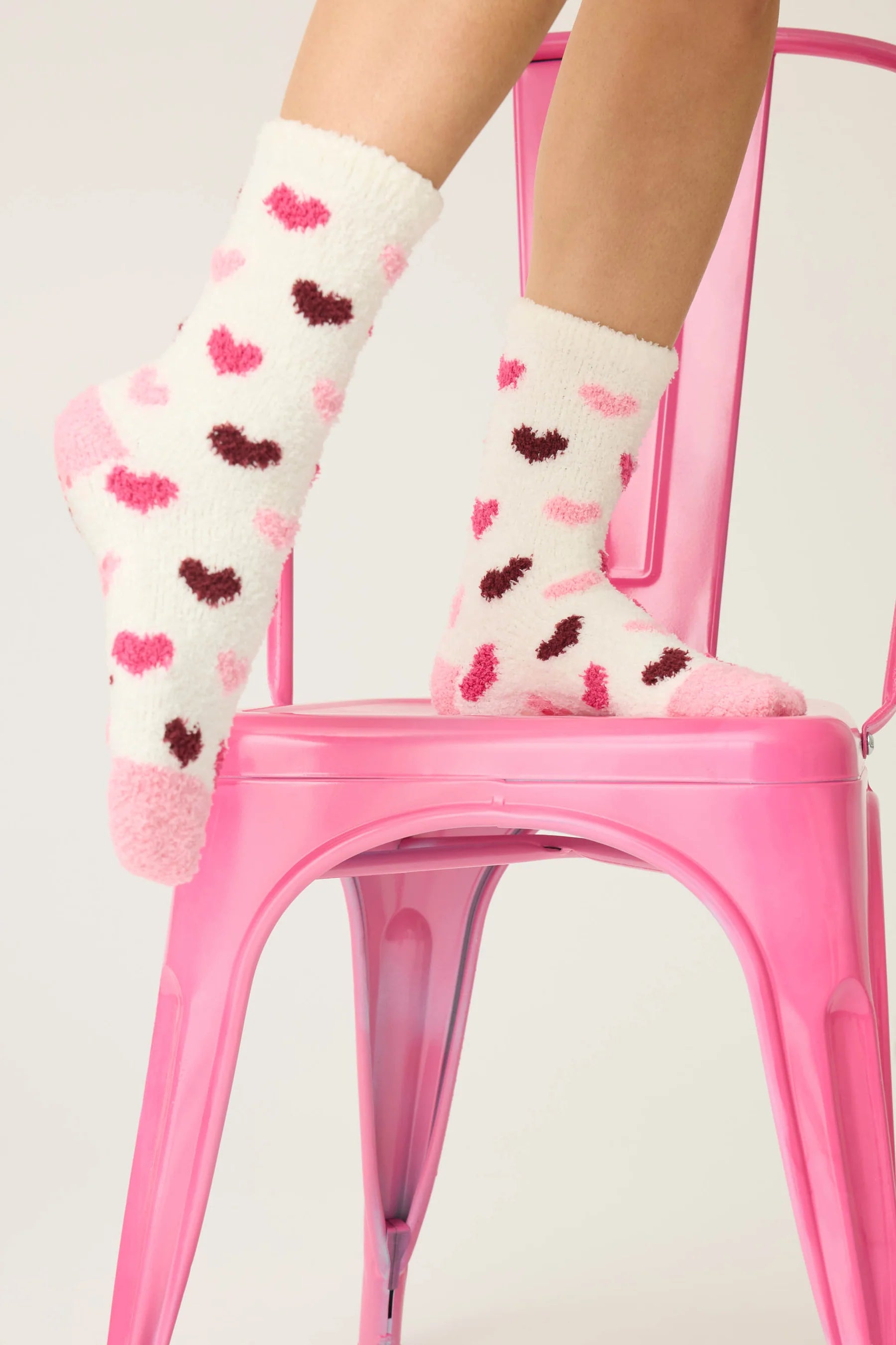 anyone with a soft spot (or just cold feet), these fuzzy gripper socks feature a heart print and candy-pink accents—made for cozy nights and cute moments alike.