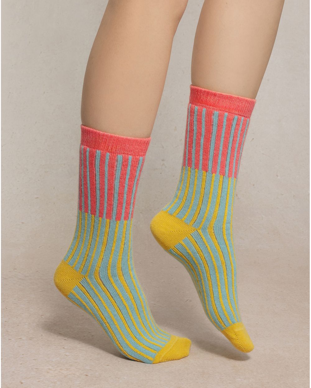 Knitted from a luxurious blend of wool and cashmere, these vertically striped socks combine elegance and warmth. Their thick, soft texture provides maximum comfort, while the modern stripe pattern adds a stylish, versatile touch to any winter outfit.
