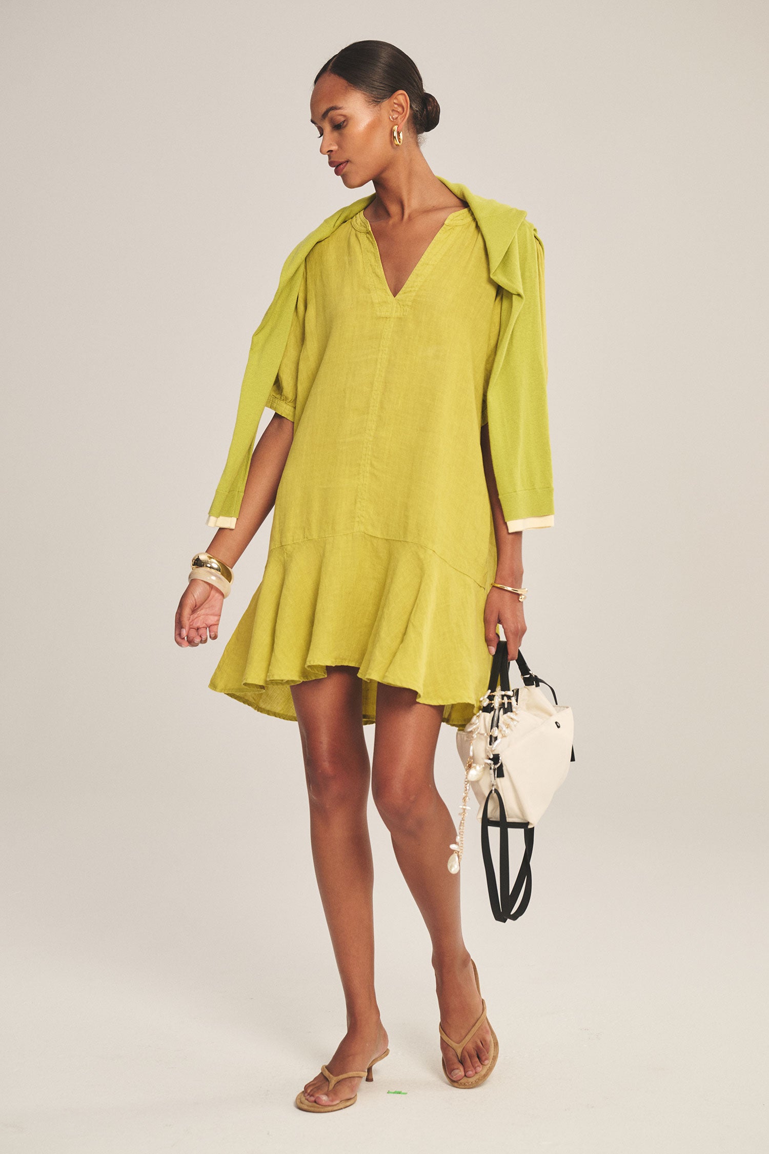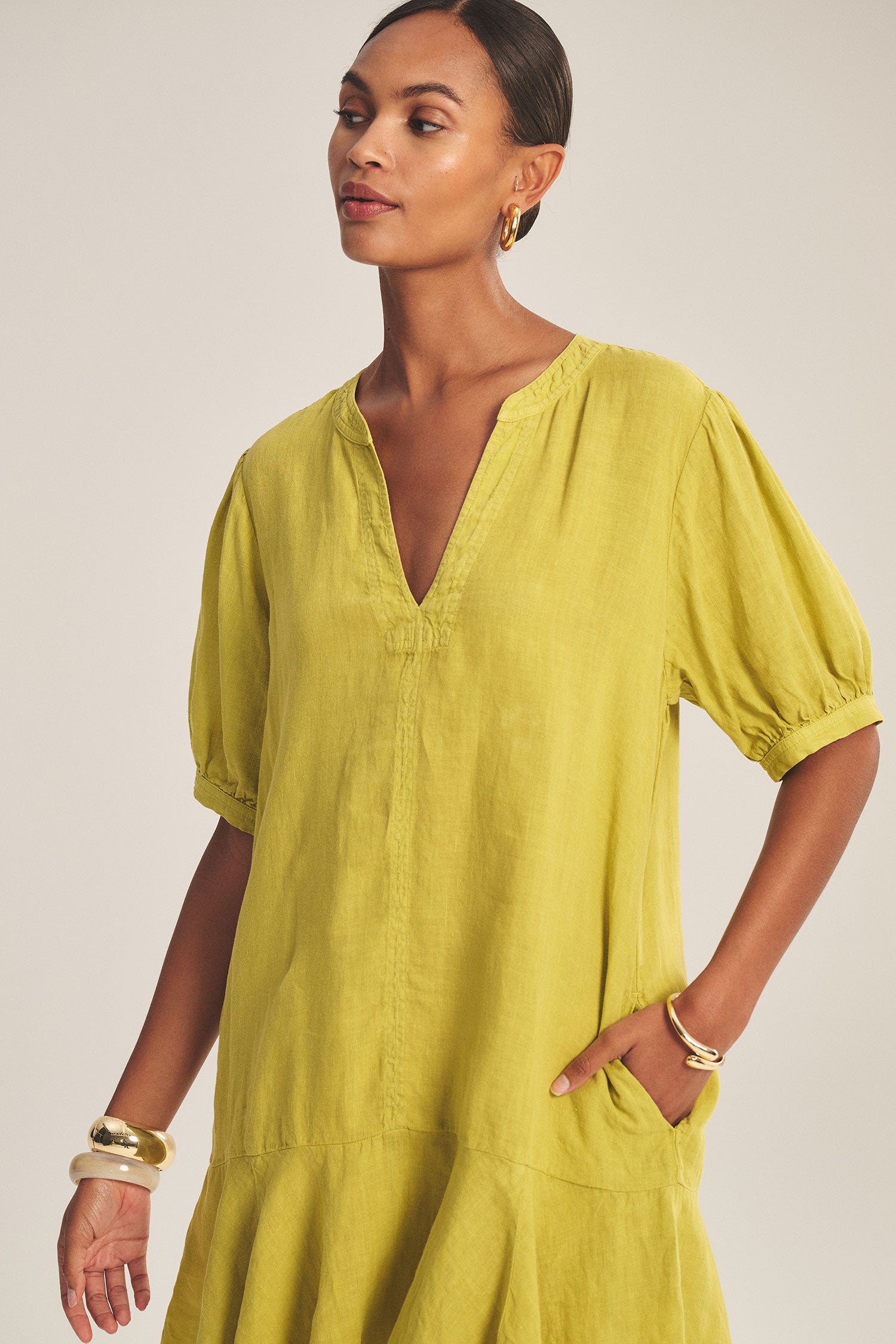 Light, effortless, and beautifully fluid, the Meadow Woven Linen Dress is crafted from 100% breathable linen for an airy, natural feel. Designed with a flattering V-neckline and relaxed silhouette, it drapes softly through the body for easy movement.