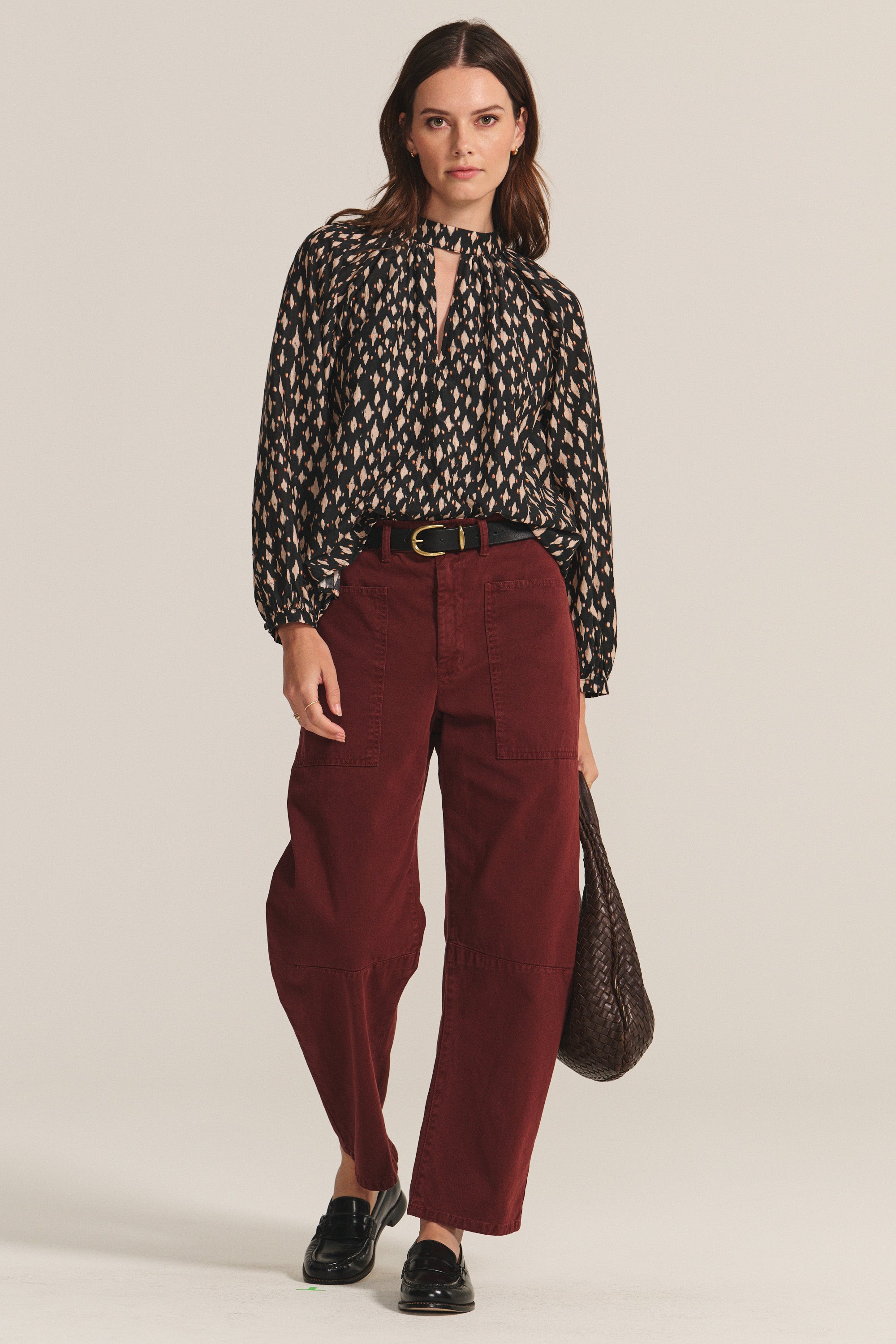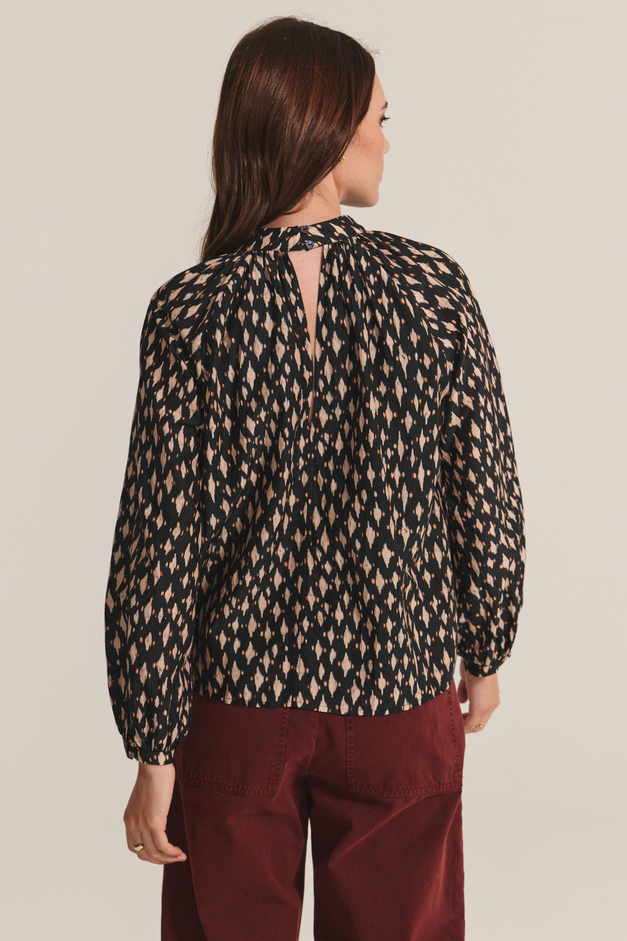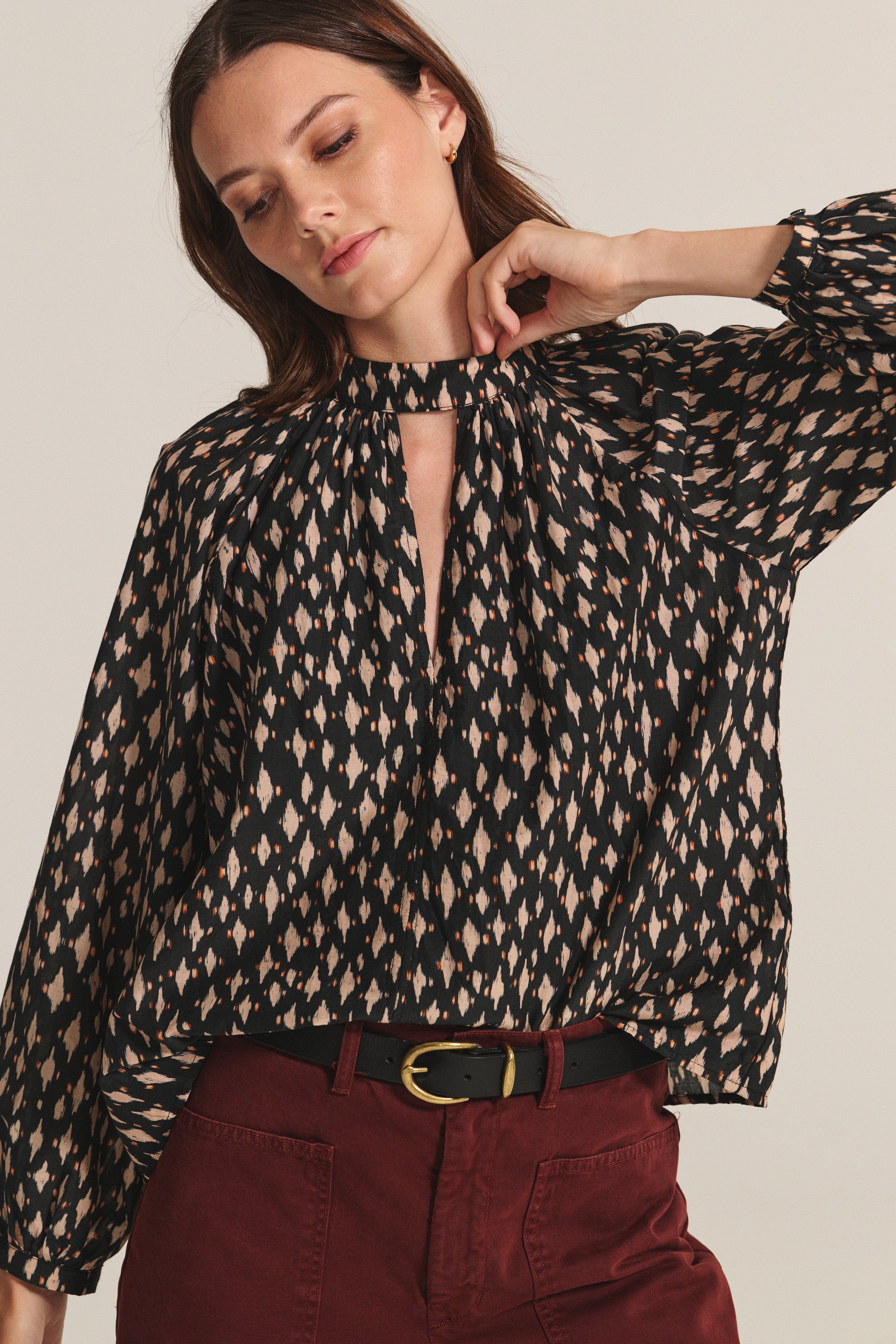 With a relaxed, airy fit and refined detailing, this long-sleeve blouse features a front keyhole opening and a single-button closure at the back. Crafted from printed silk cotton voile and fully lined through the body, it blends ease and elegance in one effortless piece.