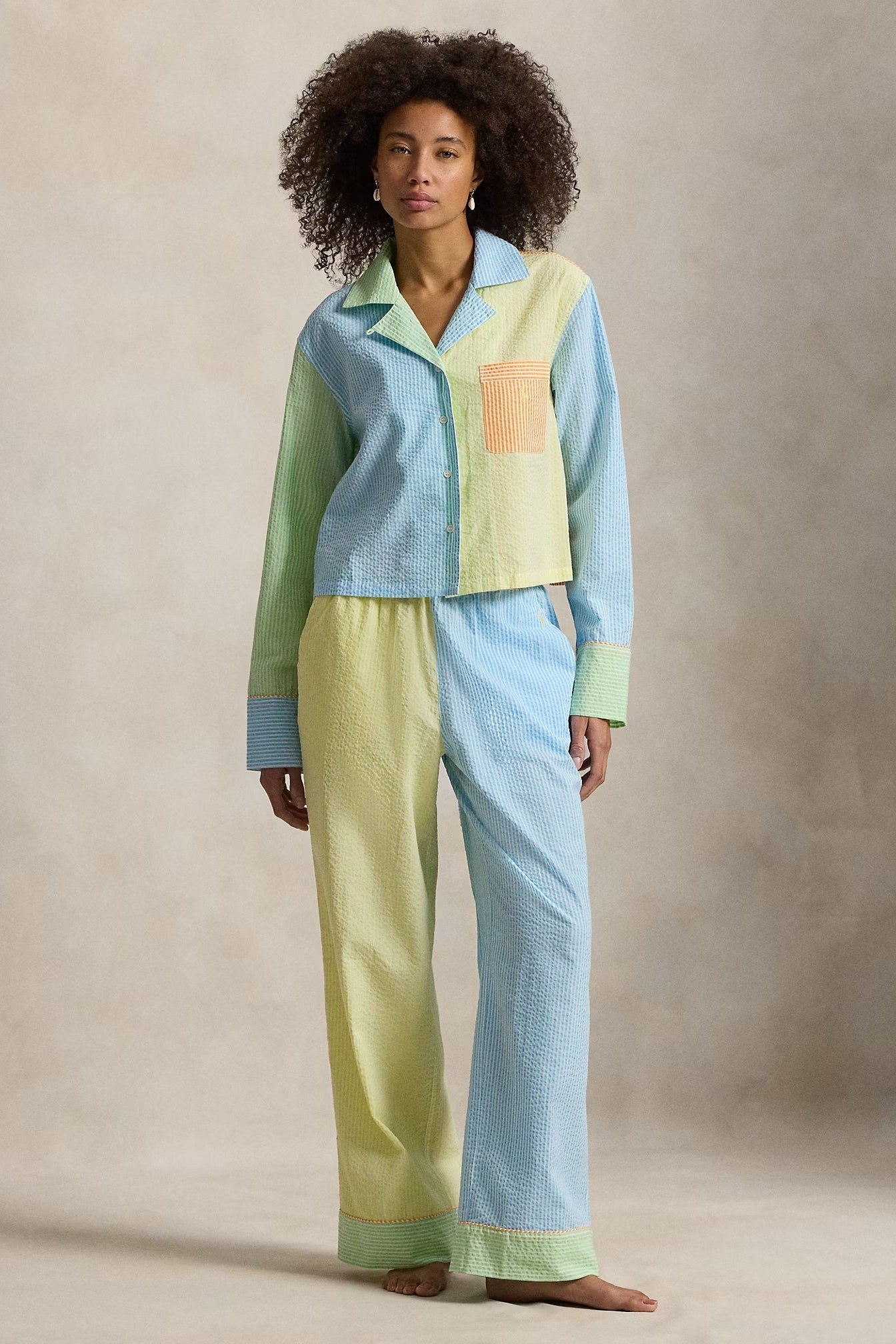 COLOR-BLOCKED SEERSUCKER PAJAMA SET